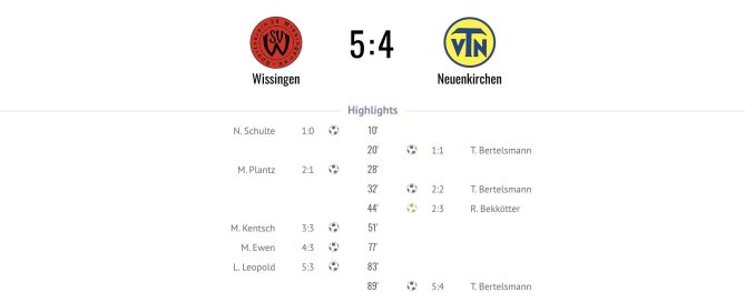 Spektakel am Heideweg: Wissingen gewinnt Topspiel mit 5:4