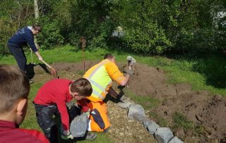 Aufstiegsrunde der U17, eine Trockenmauer mit Blühwiese und die SV28 Rabauken